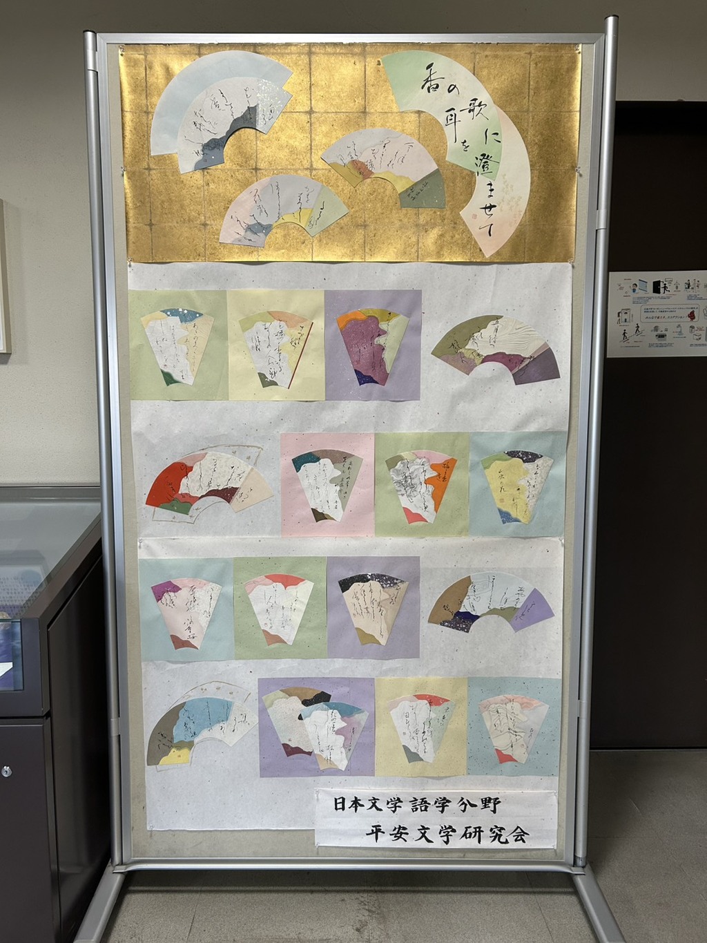 文学部1階正面玄関を入ってすぐのところに展示されております。